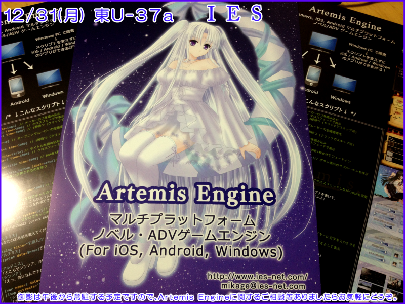 2011/8/13 Comic Market 80 にて発表、展示いたしました、Artemis Engine の Android 版につきましては、準備が完了次第、Artemis Engineのユーザー様に向けてご案内致します。